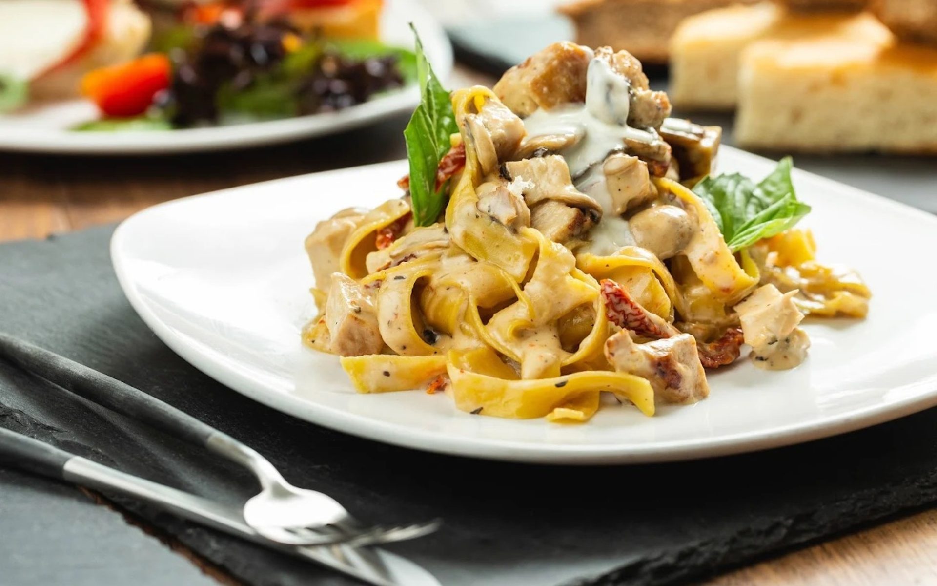 Craving Italian? Enjoy our arugula salad, pizza, and sandwiches from the comfort of your home with our convenient delivery and pickup options. Indulge in classic favorites like spaghetti carbonara and tiramisu without leaving your couch. Order now for a delicious Italian feast!